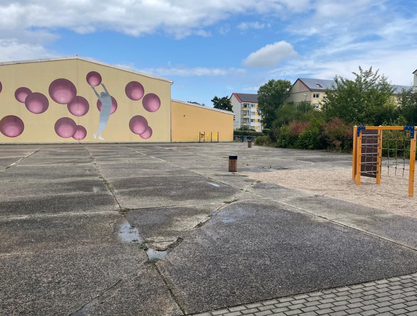 Basketballkorb und Tischtennisplatte auf dem Schulhof